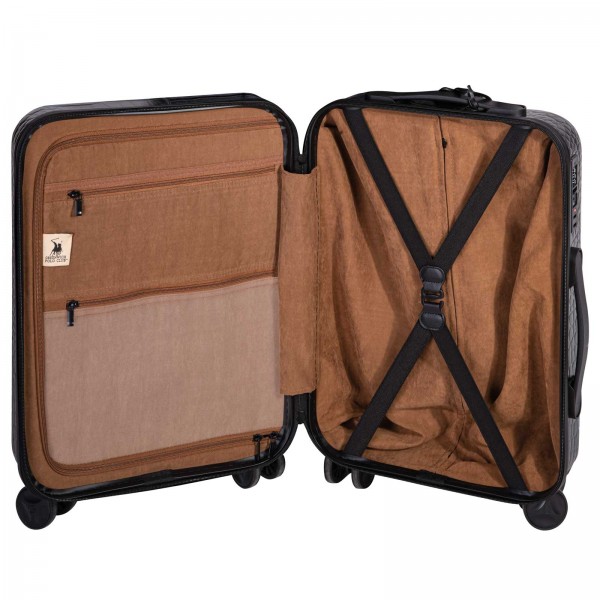 Βαλίτσα leather look του οίκου Greenwich Polo Club. Είναι κατασκευασμένη από PC/ABS, πολύ ανθεκτικό υλικό, και διαθέτει ενισχυμένες γωνίες από πολυπροπυλένιο. Επιπλέον διαθέτει 4 διπλές περιστρεφόμενες ρόδες για απόλυτη σταθερότητα και εσωτερικό τηλεσκοπικό μηχανισμό τρόλεϊ αλουμινίου. Ενσωματωμένη κλειδαριά συνδυασμού TSA 3 ψηφίων για ασφαλή ταξίδια. Εσωτερικά χωρίζει σε 2 ανεξάρτητα και ευρύχωρα διαμερίσματα, διαθέτει εσωτερικές θήκες, ιμάντες συγκράτησης και επένδυση suede. Διατίθεται σε διάσταση 76X50X28εκ. και έχει βάρος 4.73 kg. Επιλέξτε Greenwich Polo Club για να απολαύσετε ποιότητα, στυλ και πολυτέλεια.